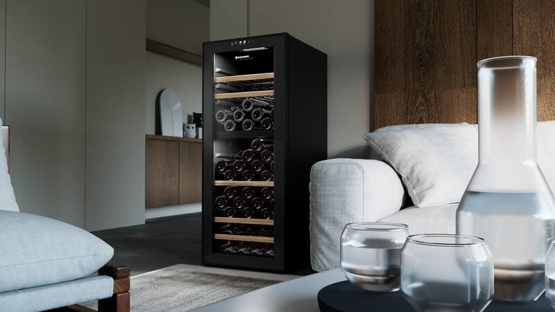 Der CEPAGE108DZ ist ein Weinkühlschrank mit zwei Temperaturzonen zur Lagerung von bis zu 108 Flaschen bei idealer Serviertemperatur. Die Metallregale mit Holzfront und LED-Beleuchtung sorgen für eine elegante Präsentation.