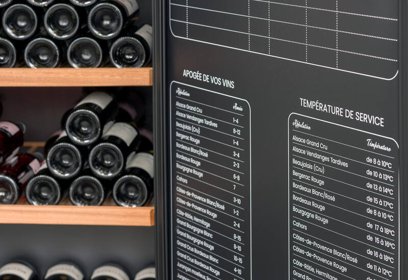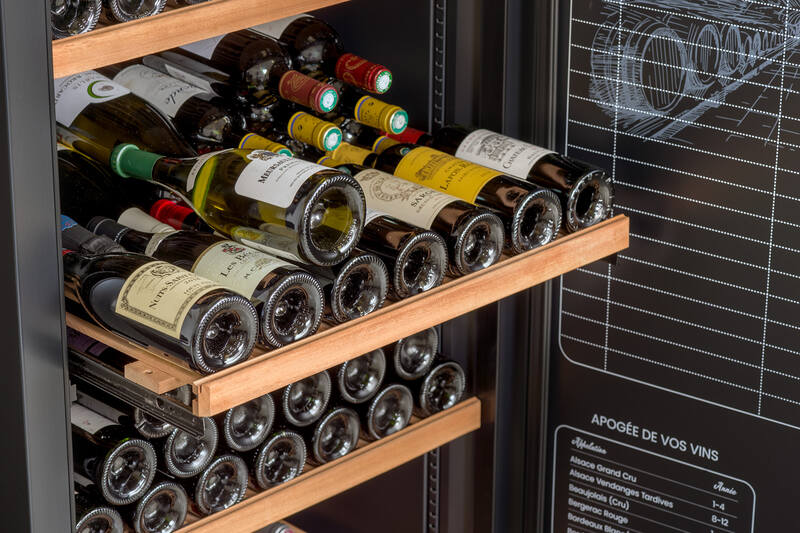 *Kapazität definiert für 75 cl Bordeaux-Flaschen. Das Hinzufügen von Regalen kann die Gesamtkapazität verringern.