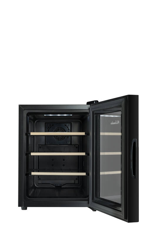 Ausgestattet mit 3 Drahtregalen mit Holzfront, einem externen digitalen Bedienfeld und kaltweißem LED-Licht. Das schlichte Design in Schwarz passt zu jedem modernen Interieur.