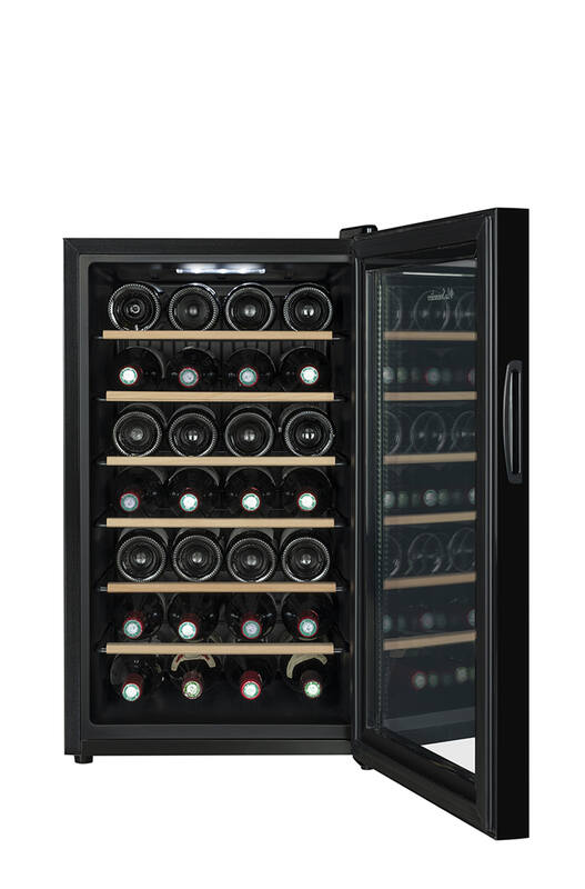 Das Highlight? Ultraleiser Betrieb mit nur 21 dB dank lüfterloser Hybridkühlung. Temperatur einstellbar zwischen 12 und 18 °C.