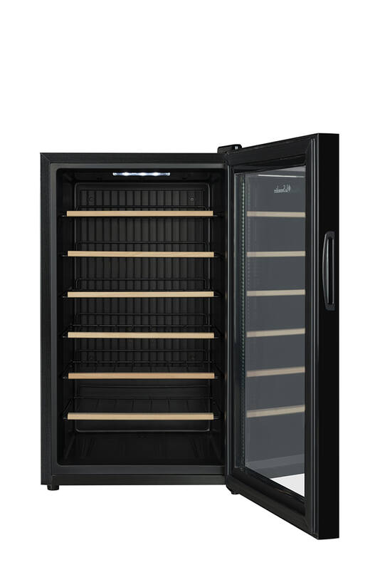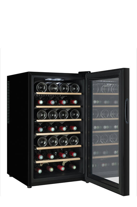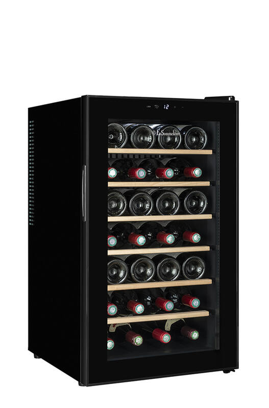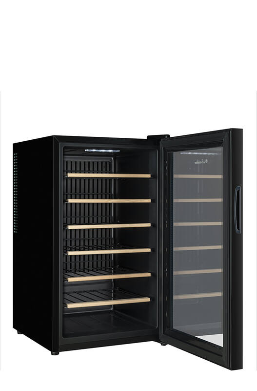 Der 28SILENCE Weinkühlschrank bietet eine Kapazität für 28 Flaschen und ist mit 6 Drahtregalen mit Fronten aus Buchenholz ausgestattet. Das schlichte und moderne Design zeichnet sich durch eine getönte Glastür mit integriertem Griff und ein externes digitales Bedienfeld aus - ideal für jedes moderne Zuhause.
